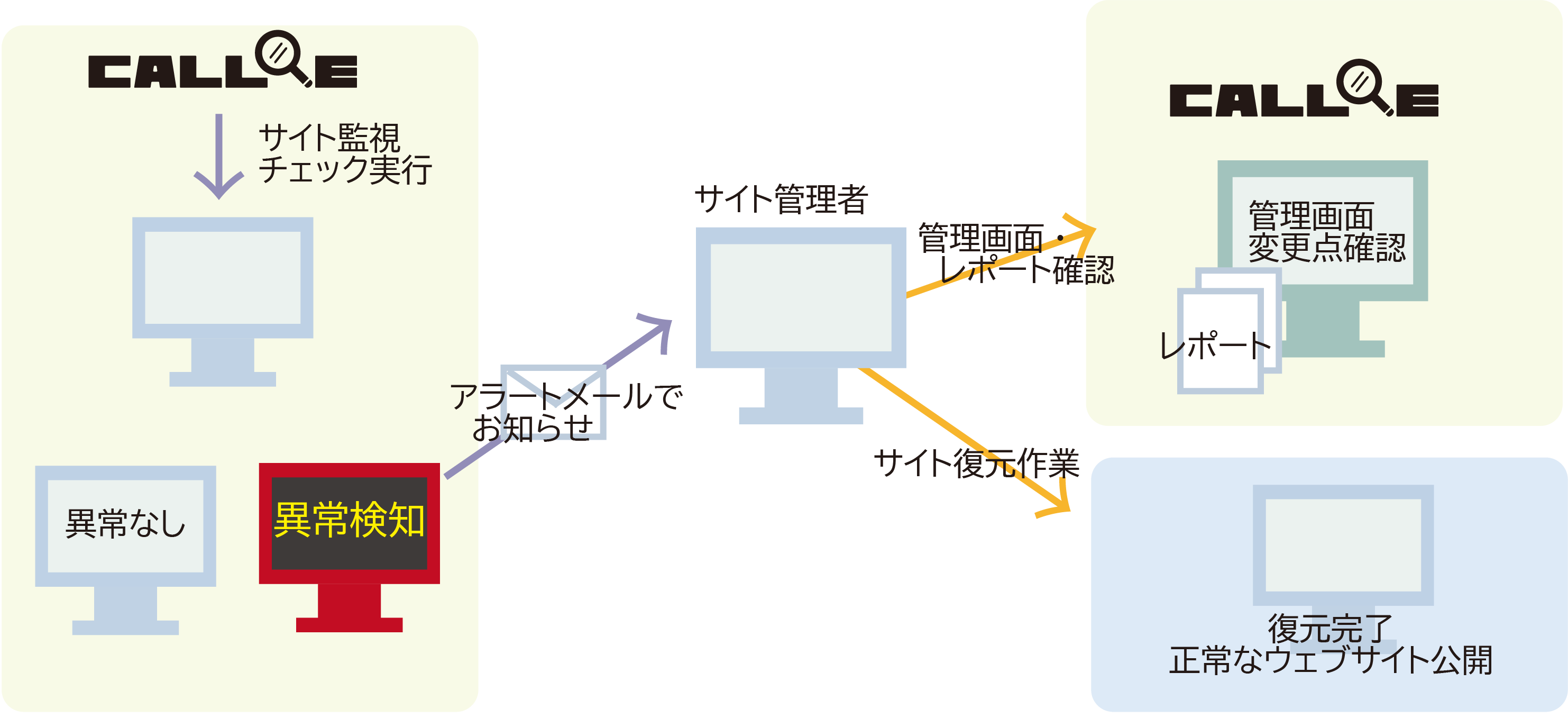 企業の信頼を守るためには、改ざんされたことの早急な検知が重要です。CALLPEでは