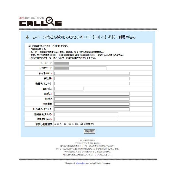 ※お試し利用については、定期チェックは1日1回、対象チェックファイルは、トップページから1階層目までとさせていただきます。